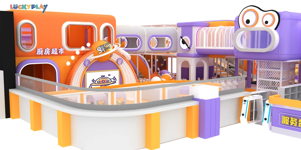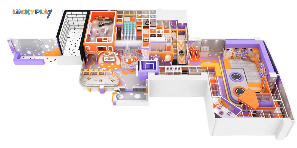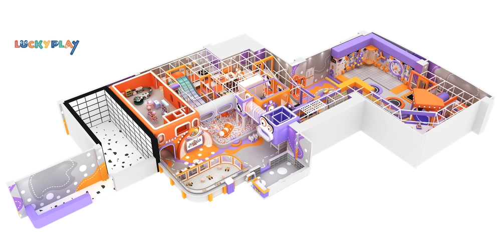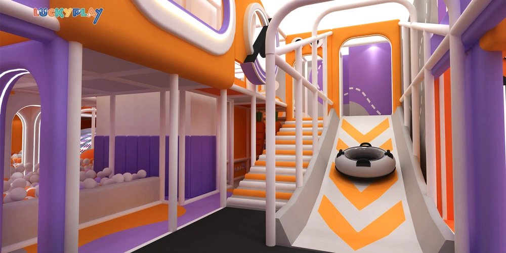 Thrilling indoor playground with smart stop adjustable speed and immersive lights customizable for malls and play centers worldwide
