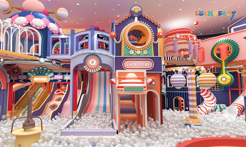 Candy Style Indoor Kids Playground with Ball Pit Slide Role Play Area for Shopping Mall