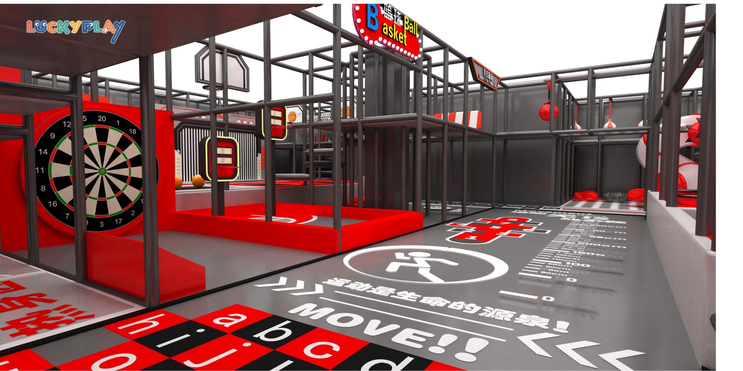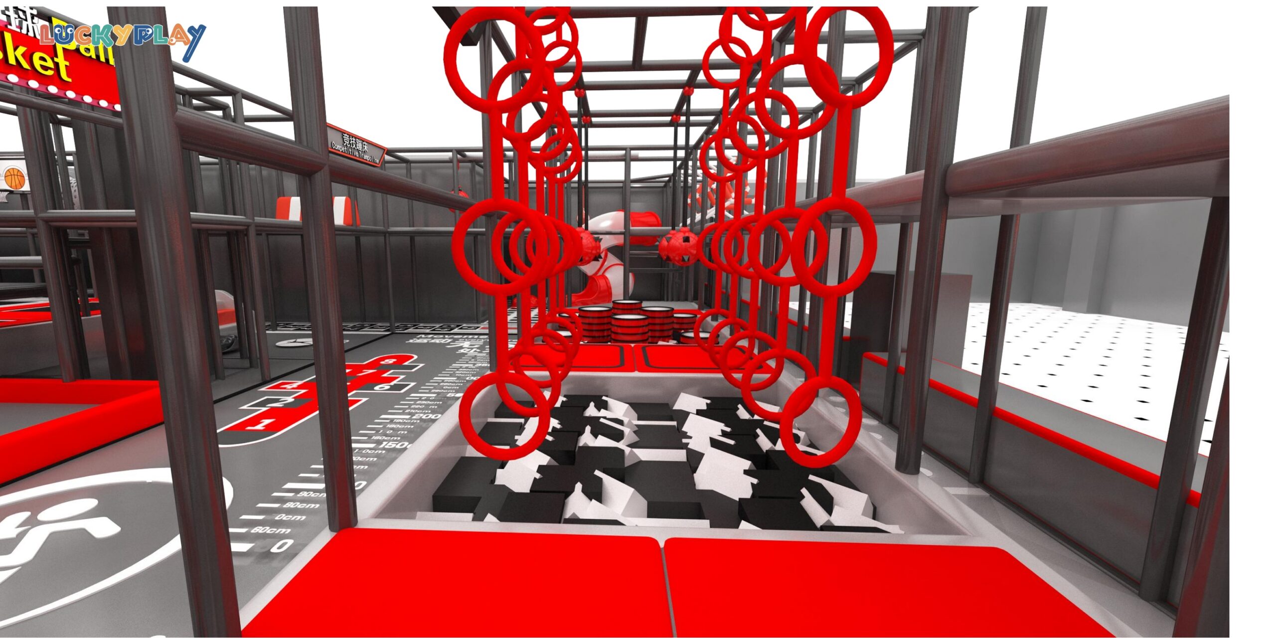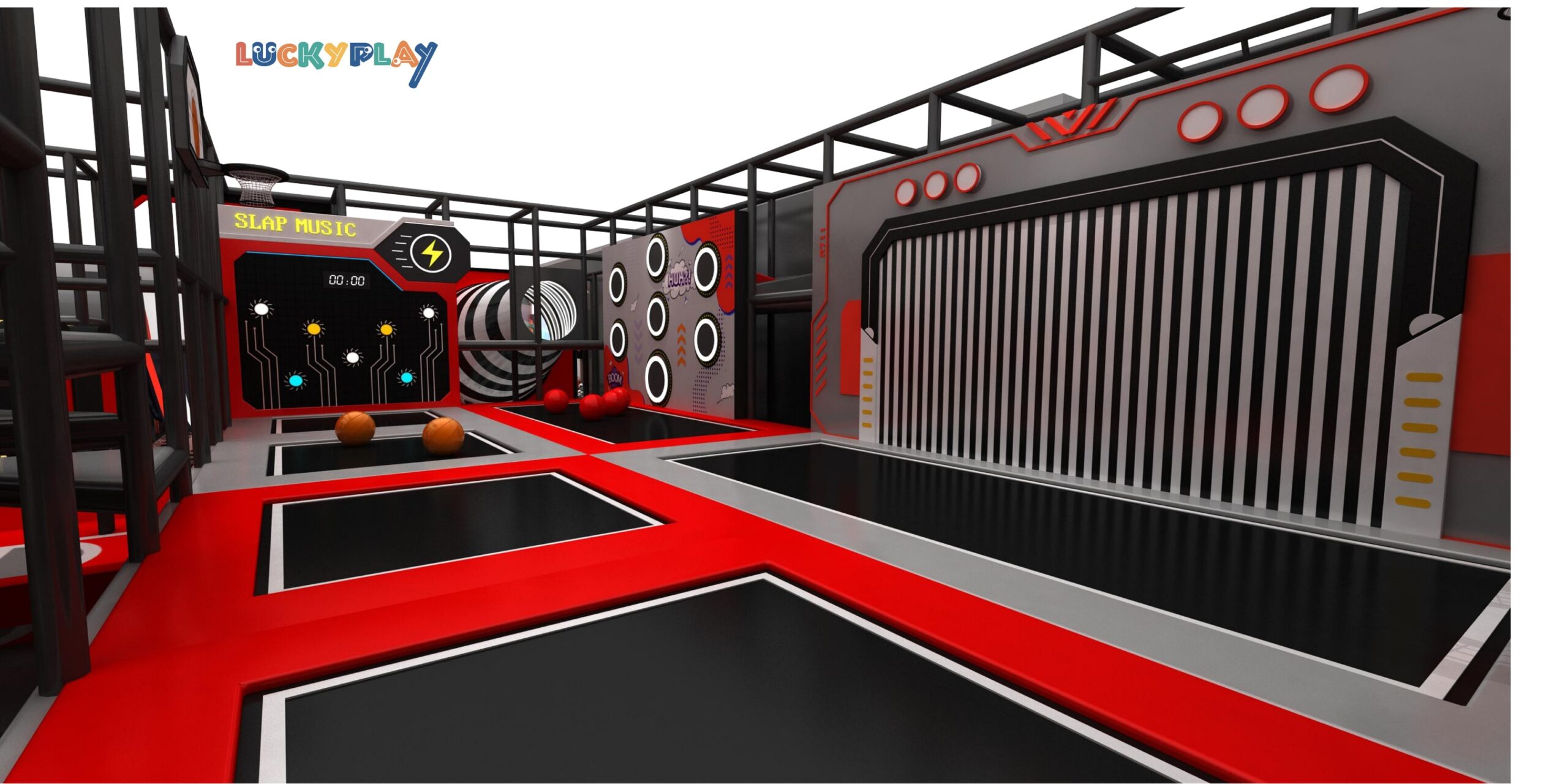 Tech style indoor trampoline playground featuring slap music wall reaction games and basketball zone Designed for teen gyms entertainment parks and commercial fun centers
