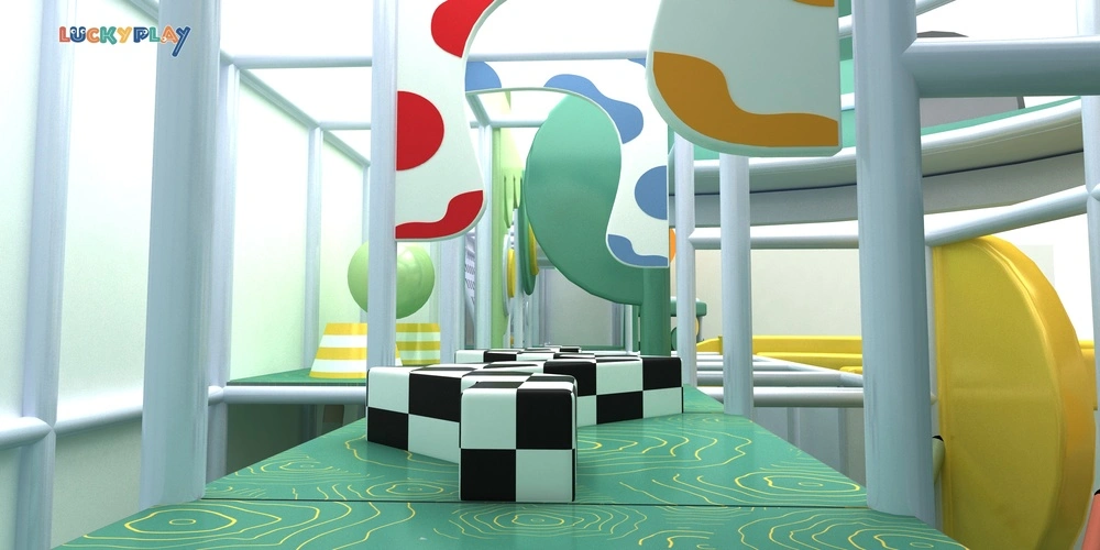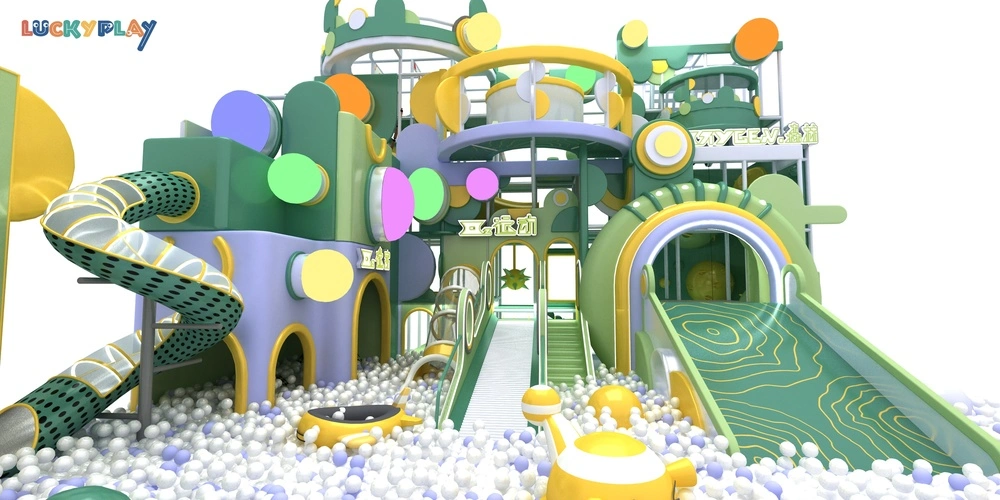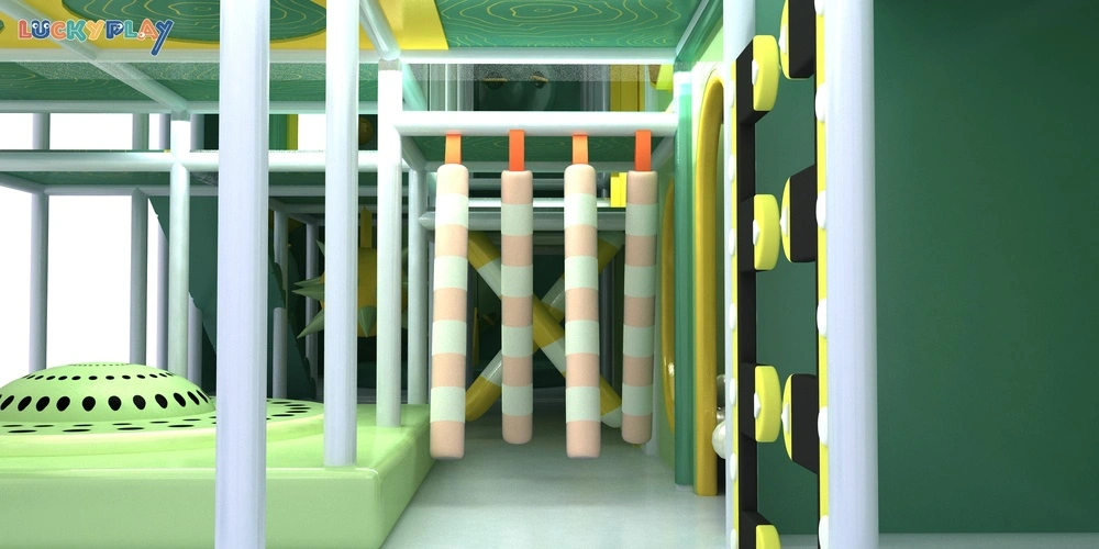 Custom Indoor Kids Playground Featuring Artistic Nature Style Multi Level Climbing Zones And Leaf Form Soft Play Equipment